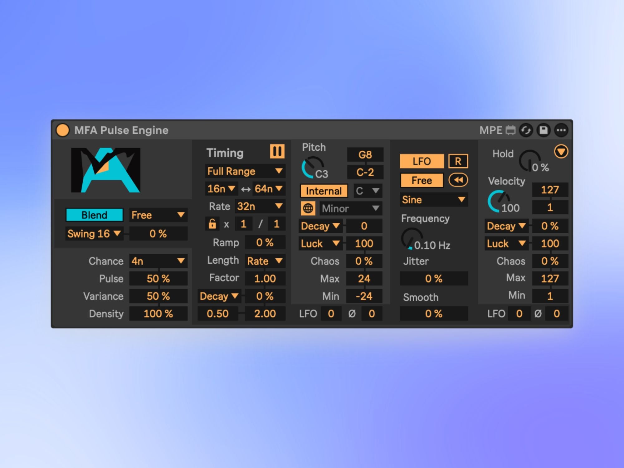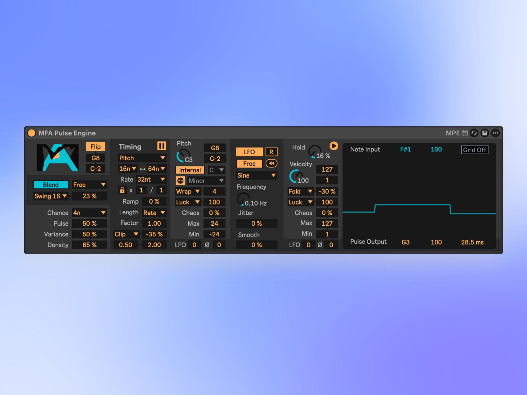 Pulse Engine is a generative Max for Live MIDI effect designed by Ableton Certified Trainer Noah Pred to create expressive rhythmic and melodic output from even the simplest ideas. Reshape incoming notes into evolving pulse clusters or produce them entirely on its own, enhancing existing MIDI or generating fresh ideas from scratch.