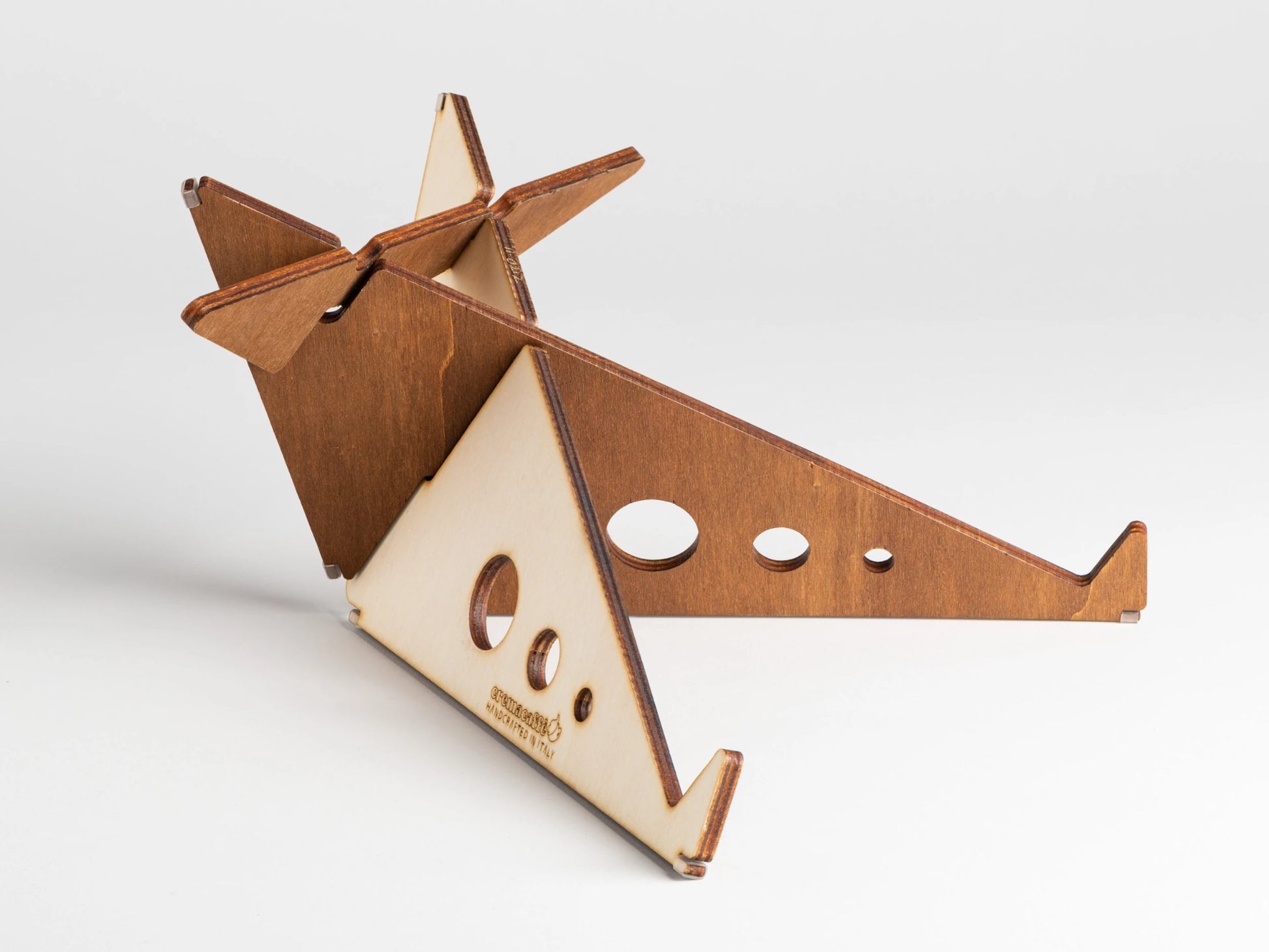 The products are the result of digital design applied to a natural material, laser-cut, stained and sanded, hand finished and numbered one by one.